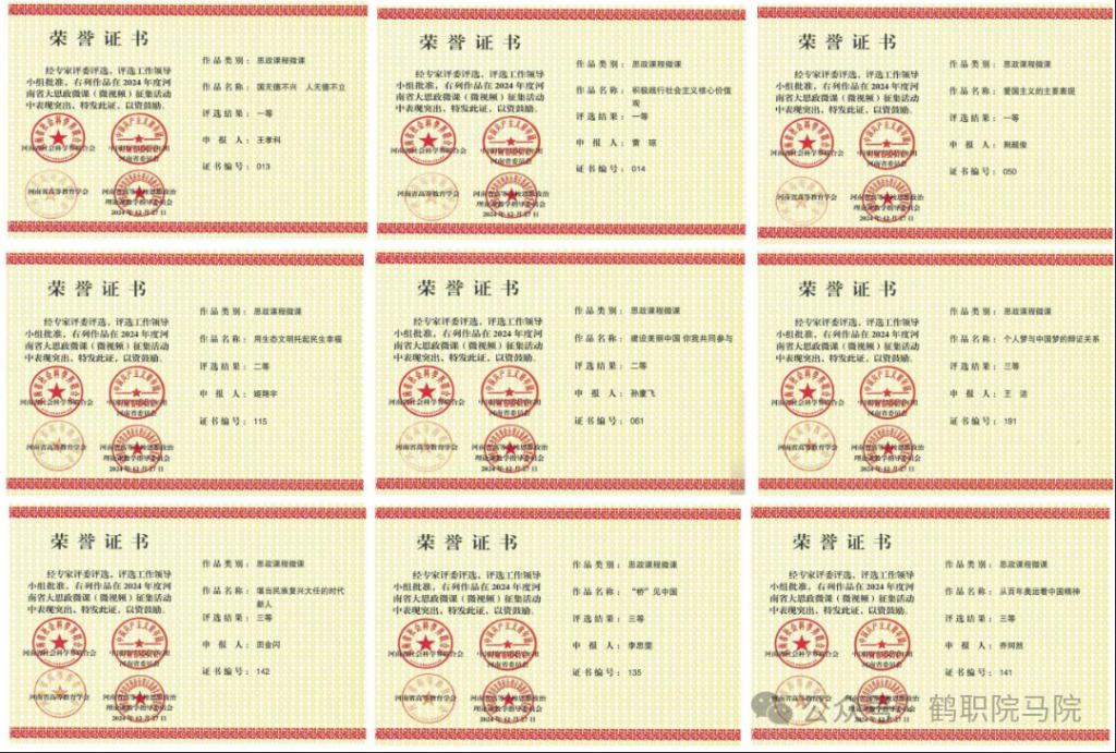 近日,由河南省社会科学界联合会、共青团河南省委、河南省高等教育学会、河南省高校思想政治理论课教学指导委员会联合举办的2024年度河南省大思政微课(微视频)评选结果正式揭晓,公司教师取得了荣获一等奖3项、二等奖2项、三等奖4项的好成绩。公司高度重视此次评选活动,参赛教师们以“大思政”为主线,结合社会热点,贴近老员工实际,深入挖掘教学内容,创新教学方法和手段,以新形式传播主流意识形态,让思政课更具有吸引力、传播力和感染力。公司将进一步加强思政课程建设,不断提升教师的教学能力和水平,努力打造更多具有思想性、理论性和亲和力、针对性的思政“金课”,为培养德智体美劳全面发展的社会主义建设者和接班人贡献力量。